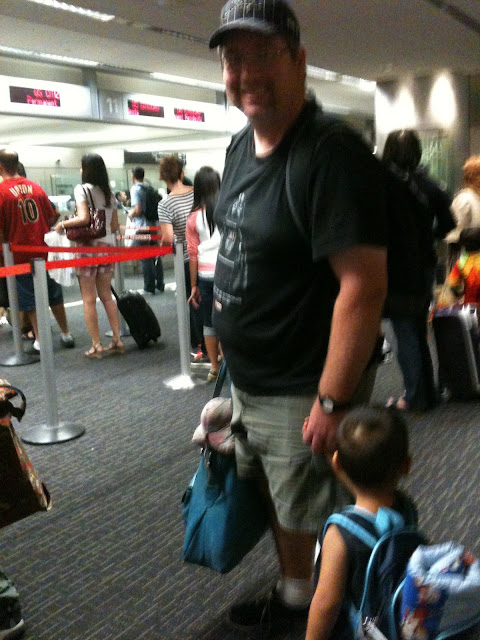 The next day we arrived at the airport 2 hours before our plane left and had to run to catch it after waiting in several really long lines to check in, go through security and customs. Our flight to Japan was over 4 hours. Jack did good. It was late arriving in Tokyo and we had to run to catch our next plane after again going through long lines for security and customs. So we didn't get to stretch our legs much before the long 10 hr flight to the US after already doing a long flight. The inflight entertainment was terrible, a few channels on tvs in front of us that played the same 3 movies. Watch all the movies and we still had 6 hours to kill and there was only one kid friendly movie. We were spoiled on the international flight too China I guess. Hours of movies, music and games on the interactive tvs we had. Jack ate dinner and slept for quite a while on the flight. Answer to prayer!